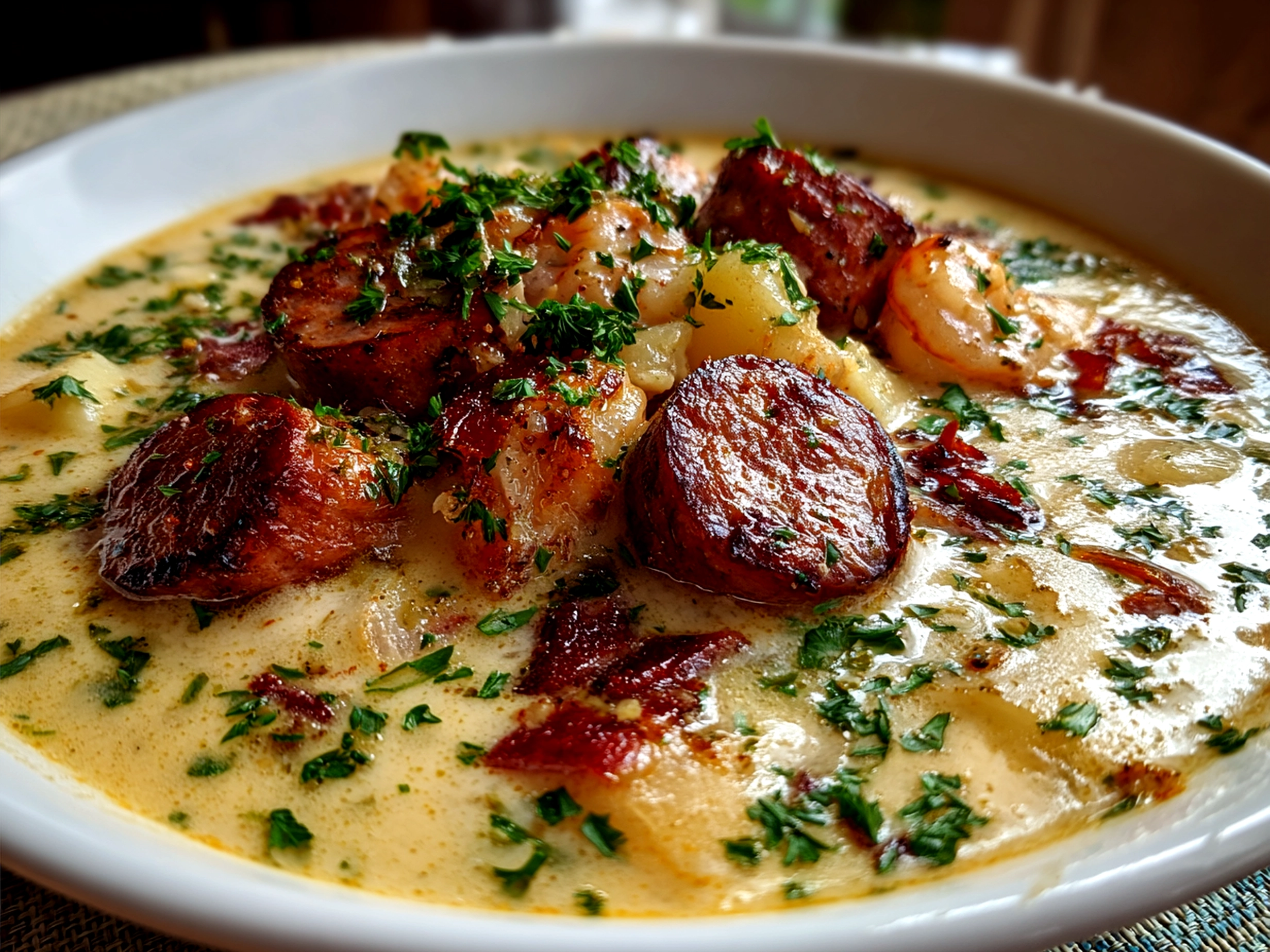 This hearty Cajun Potato Soup with spicy Andouille sausage combines creamy potatoes and bold spices for a comforting and flavorful meal perfect for any season.