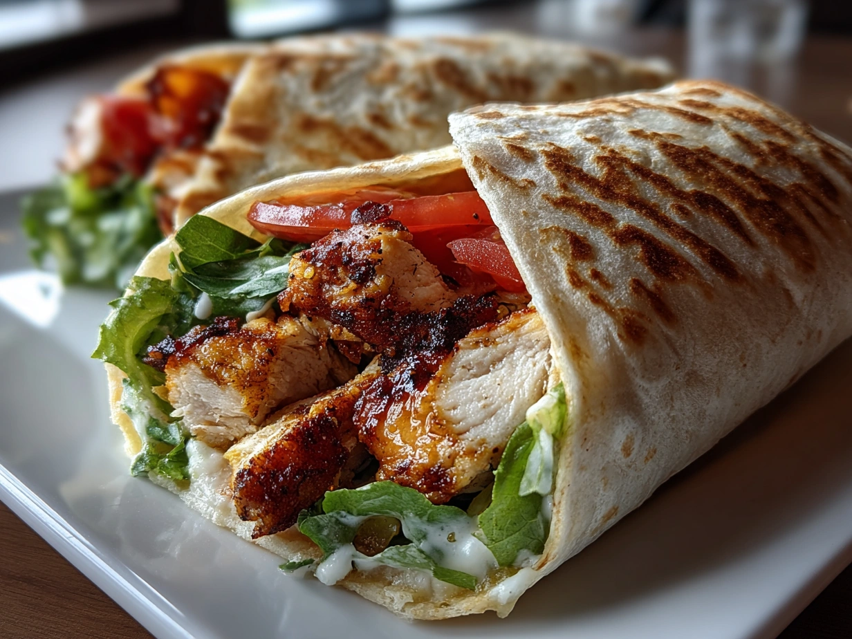 Grilled chicken gives the best smoky flavor, but pan-seared or rotisserie chicken works too. The key is juicy, well-seasoned protein in your Caesar salad wrap.