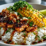 This Chicken Rice Bowl with Street Corn brings together tender, seasoned chicken and flavorful Mexican-style street corn atop fluffy rice for a vibrant, satisfying meal.