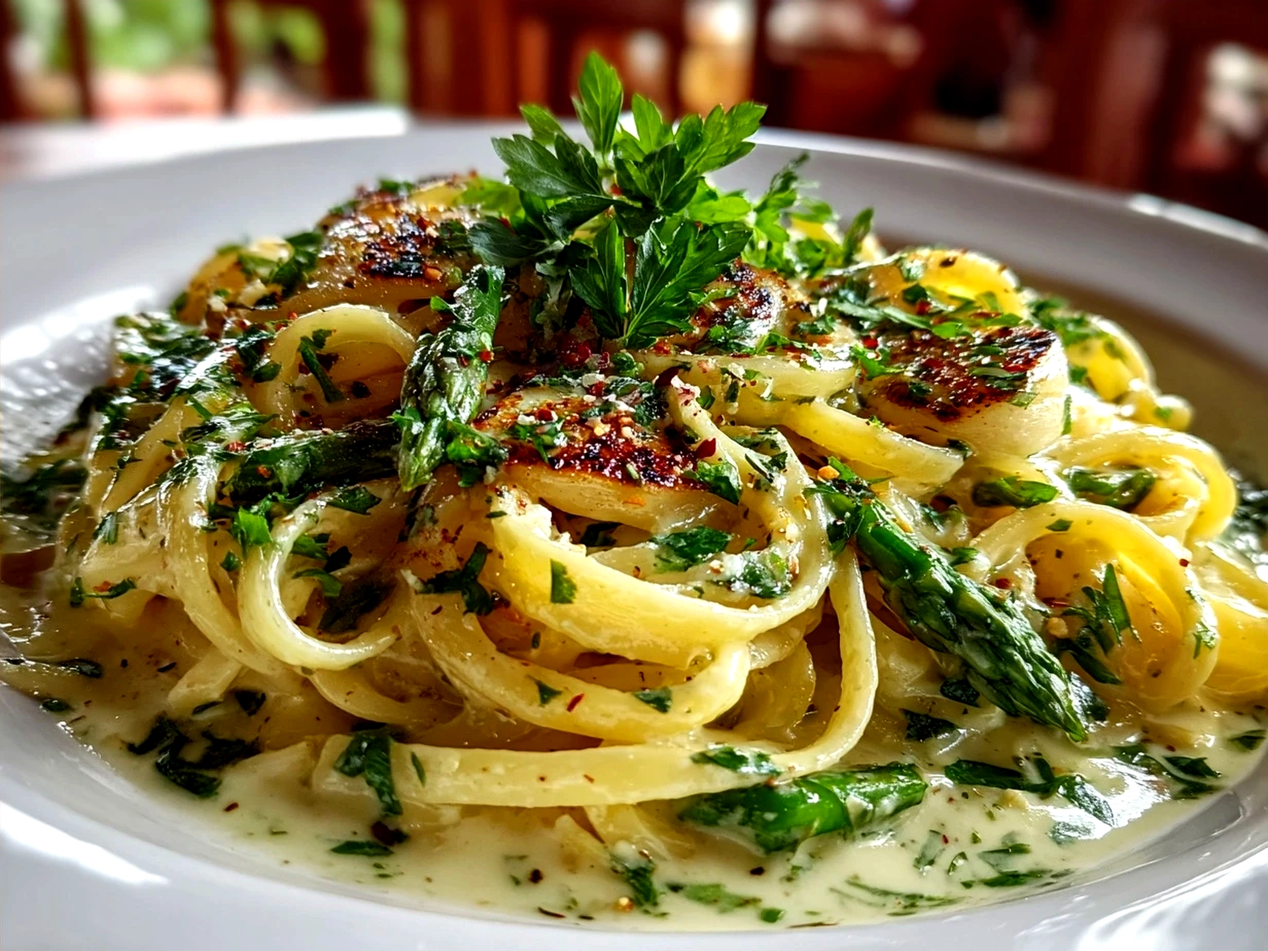 I love ribbon noodles like fettuccine, linguine, or even spaghetti. The creamy garlic lemon sauce clings beautifully, making every bite cozy but bright.
