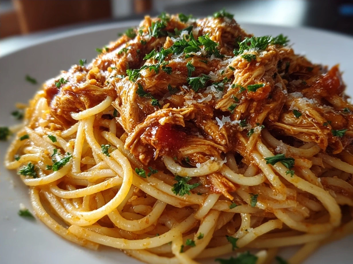 If you love bold flavors like I do, don’t skip adding a little extra paprika and garlic — it really wakes up this Crockpot Chicken Spaghetti.