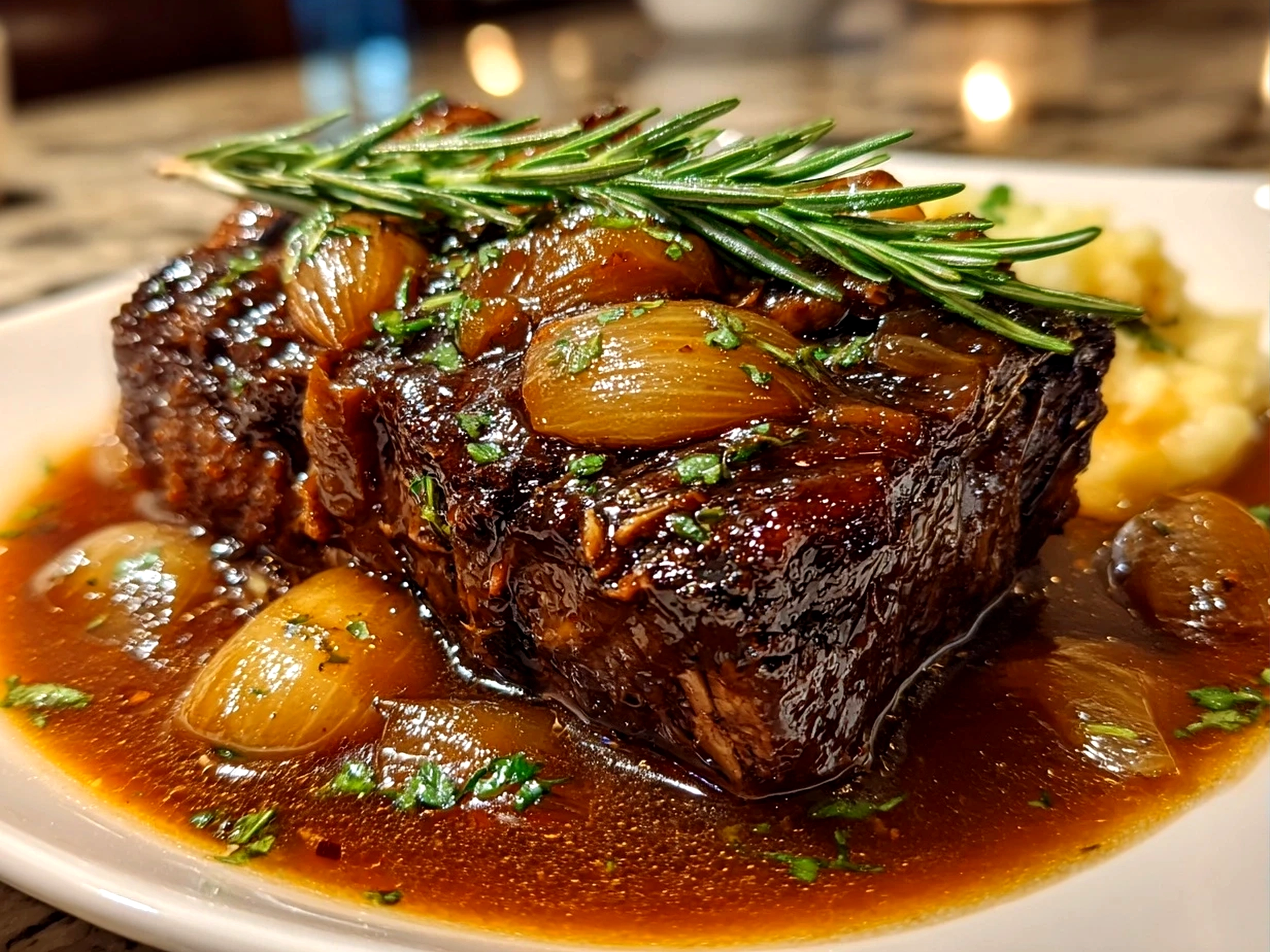 For extra richness, serve with creamy mashed potatoes or crusty bread to soak up the delicious onion gravy.