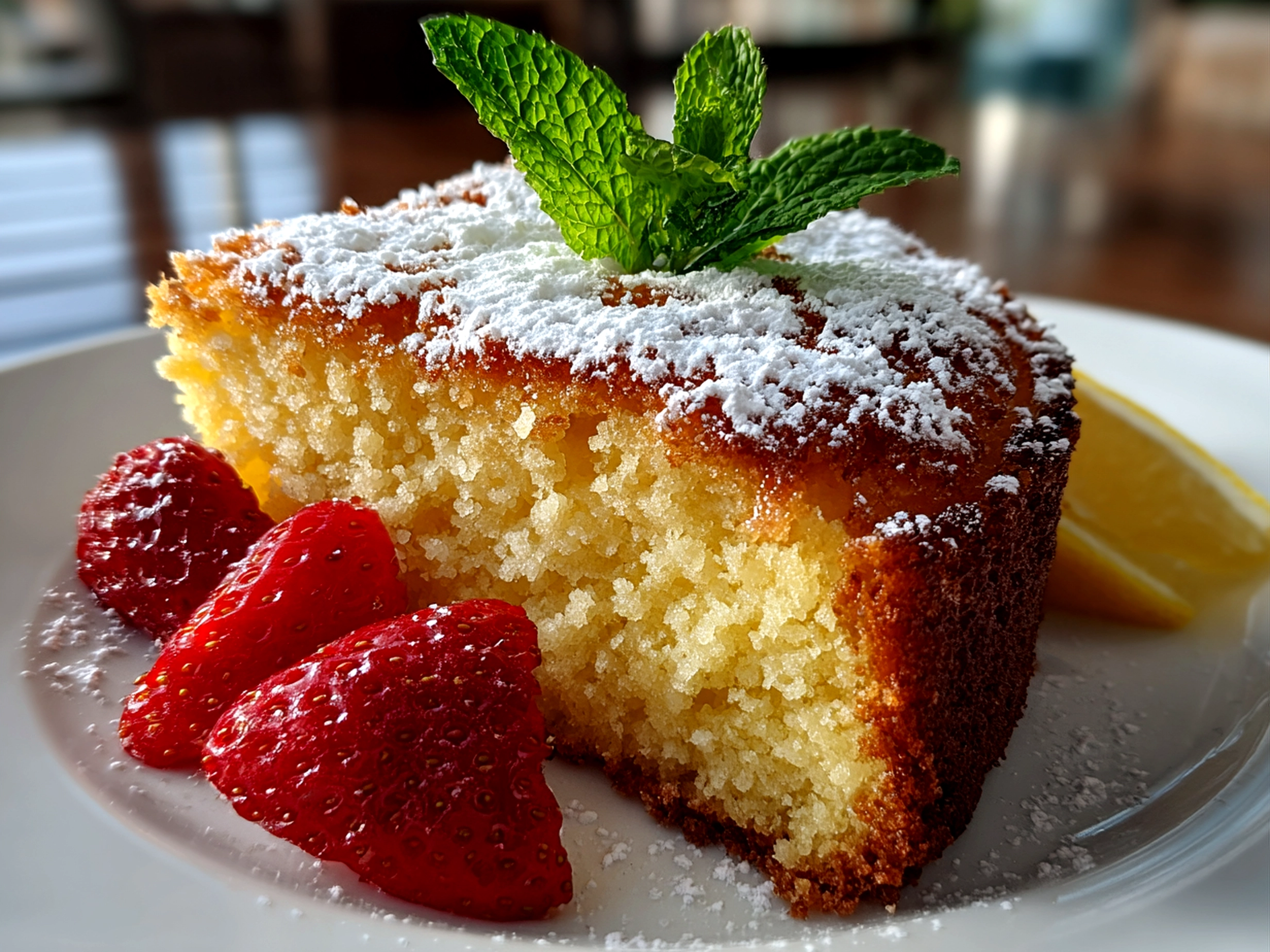 For an extra touch, garnish the cake with thin lemon slices or fresh mint leaves before serving.