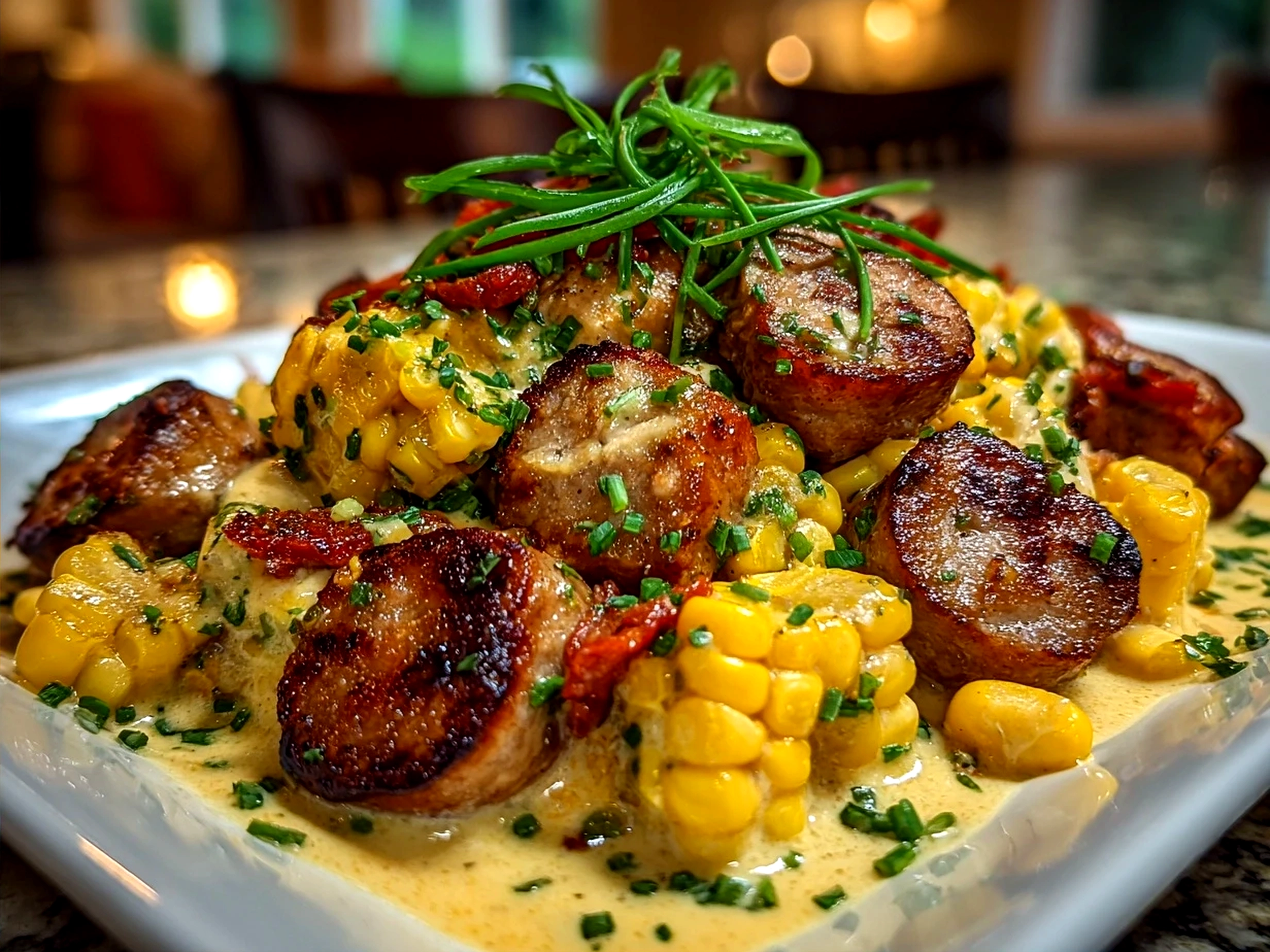 Maque Choux with Sausage Corn is a flavorful Cajun-inspired skillet dish combining sweet corn, smoky sausage, and a blend of fresh vegetables, perfect as a hearty side or main.