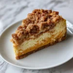 - Assemble and Bake: Pour cheesecake filling over the crust. Sprinkle streusel topping evenly over the filling.