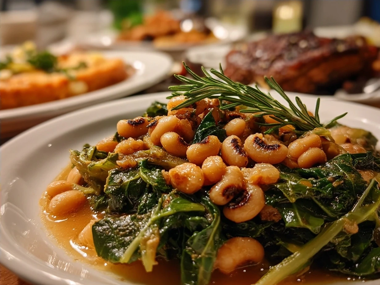 They bring a slightly bitter, earthy flavor that balances the sweet creaminess of the black-eyed peas. When cooked down slowly with smoky seasoning, it’s pure comfort.