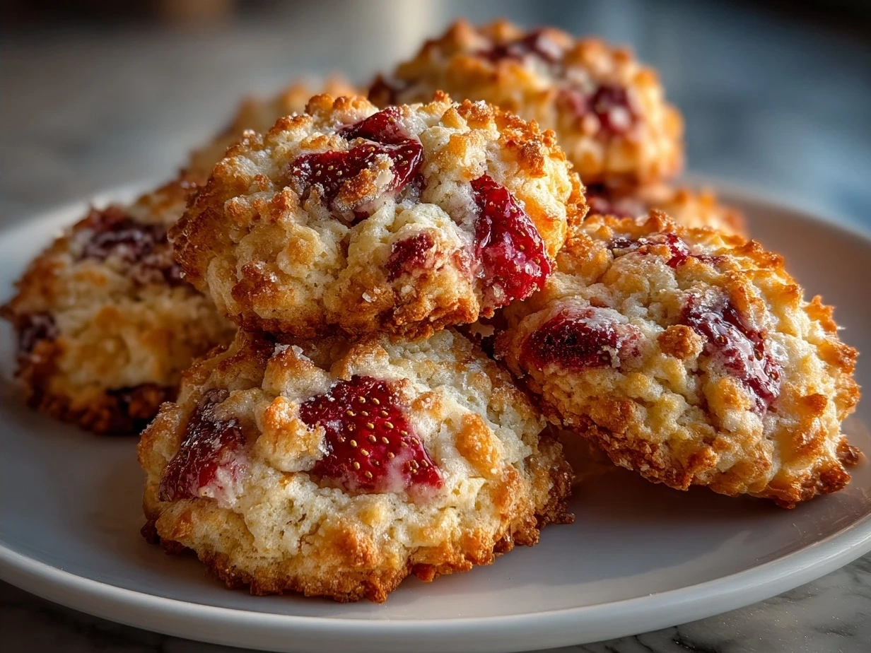These Strawberry Crunch Cookies are a delightful treat bursting with fresh strawberry flavor and a satisfyingly crunchy topping. Perfect for a summer picnic or a sweet afternoon snack.