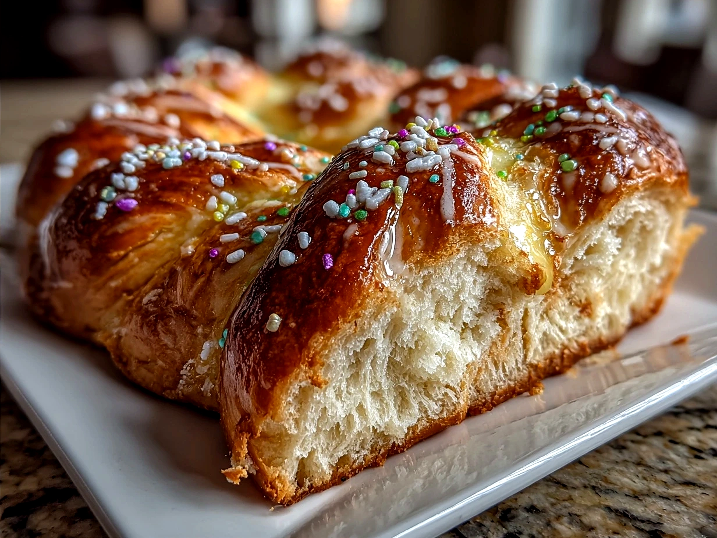 - Final touch: Once cooled slightly, brush the cake with warm glaze and sprinkle with purple, green, and gold sugar for that Mardi Gras King Cake vibe.